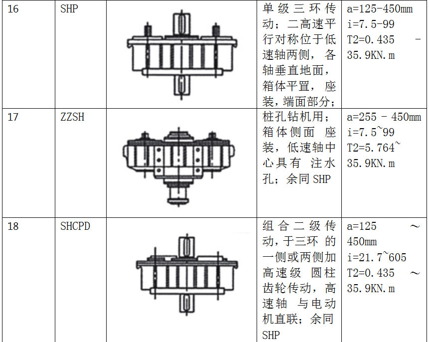 環(huán)式傳動機(jī)構(gòu)自成體系,按基本型的單級傳動,增加 速與低速軸的數(shù)量或變更其相互位置,構(gòu)成若干派生型、單級傳動還可以串聯(lián)成多級傳動。該傳動裝 因采用簡單的“平行軸一動軸”三環(huán)式傳動原理基本構(gòu)件的運(yùn)動和受力均衡又充分地運(yùn)用了功率分 流和多齒內(nèi)嚙合,具有以下特點(diǎn):